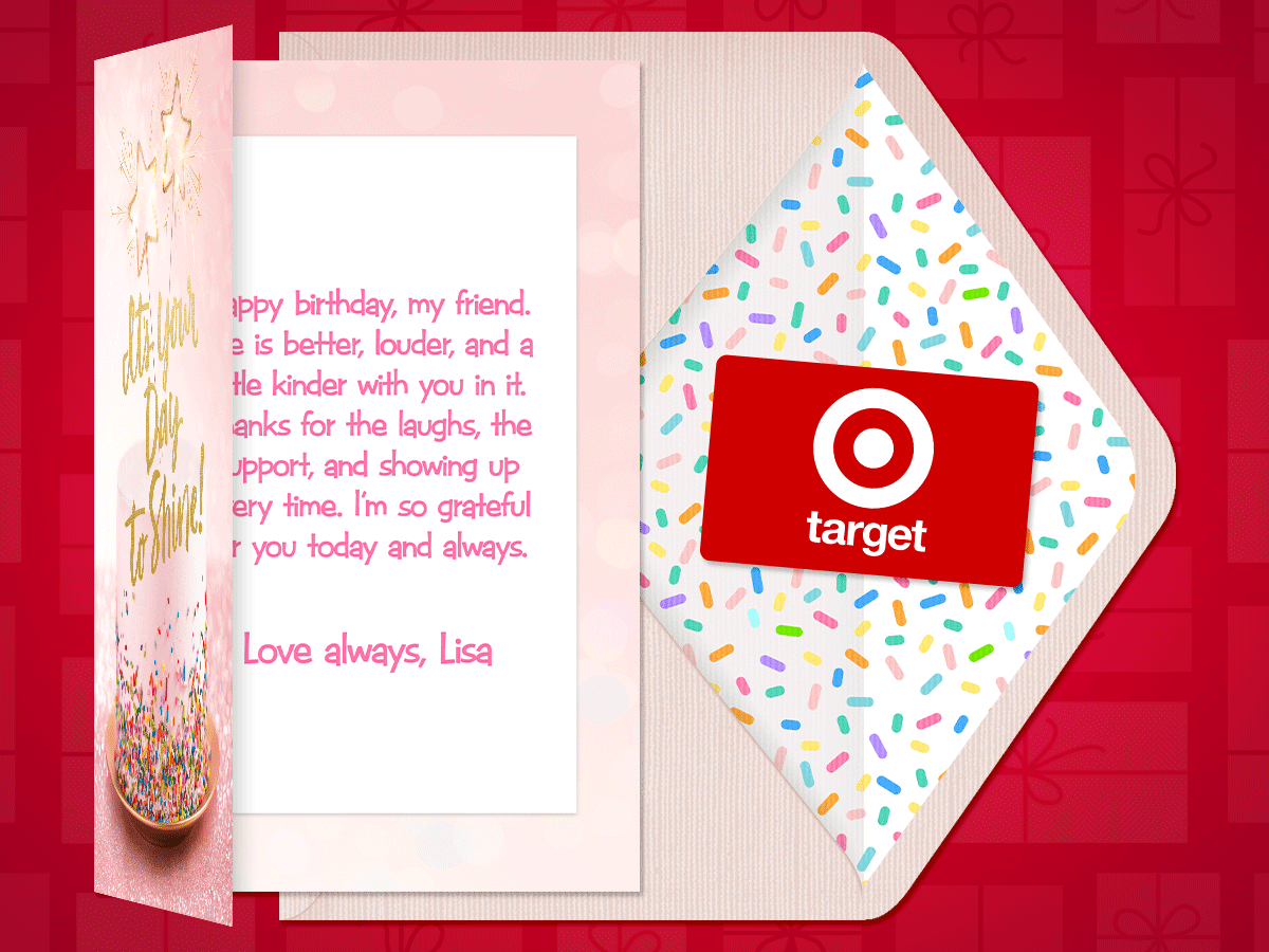 When you send a gift card online from American Greetings, you’re not just sending an egift card, you’re sending a personalized experience. Every egift card from American Greetings arrives inside a custom virtual greeting card, complete with your own message, photos and signature.